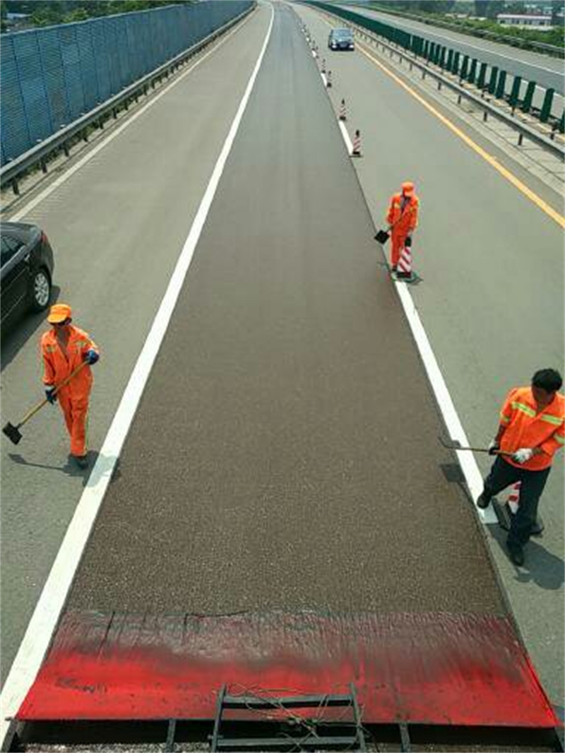 應用范圍:     砂封層主要應用于高速公路,一、二級公路瀝青路面的預防性養護。可以進行美化路緣、路肩施工。經過砂封層施工后可以改變新舊路面的外觀及顏色。施工說明:砂封層是一種層鋪的施工工藝。采用同步碎石封層設備將聚合物改性粘結材料和骨料金剛砂同時撒布施工的一種施工工藝。粘結材料應選擇高濃高粘且具有一定滲透型和還原性。骨料需選擇耐磨的金剛砂。技術特點:(1)常溫施工,無需加熱,節(jié)能環(huán)保。(2)用來解決瀝青路表面瀝青老化出現的貧油狀況。(3)解決原路面出現的麻面、松散掉粒、輕微裂縫等現象。(4)新路面可以起到防水的作用。(5)增加路面摩擦系數和耐磨性能。施工工藝:封閉交通→清理路面→病害處理→砂封層施工→養生→開放交通